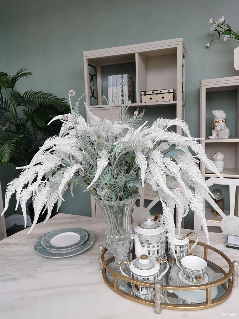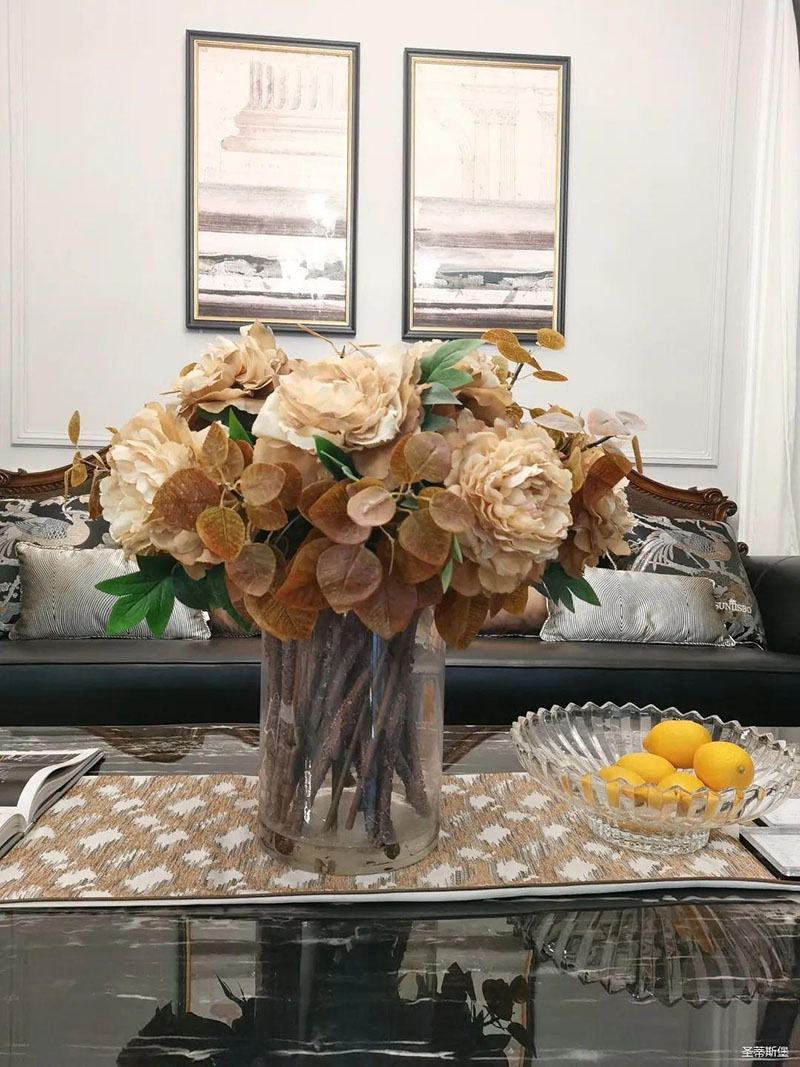 3.轻奢的配饰也需邀来似锦繁花相称。色彩跳脱的植物更为亮眼,让自然界的色彩与姿态应和空间之间的协调,传递空间与情感的共鸣。